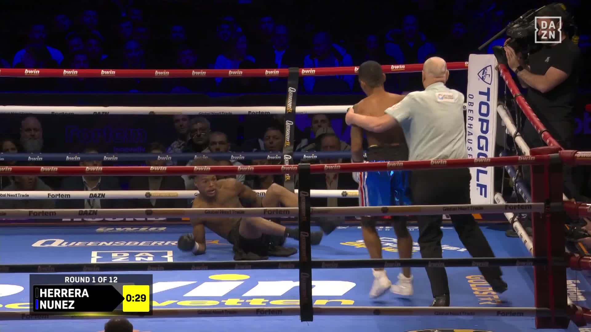 Ricardo Nunez entered the fight with clear intentions, pressing Herrera and making it a physical battle from the start. He pushed forward, trying to crowd the unbeaten fighter, making it difficult for Herrera to find his rhythm. Some ringside observers noted a possible knockdown in the second round, but Herrera recovered quickly and continued, though his composure was noticeably tested by the pressure.
