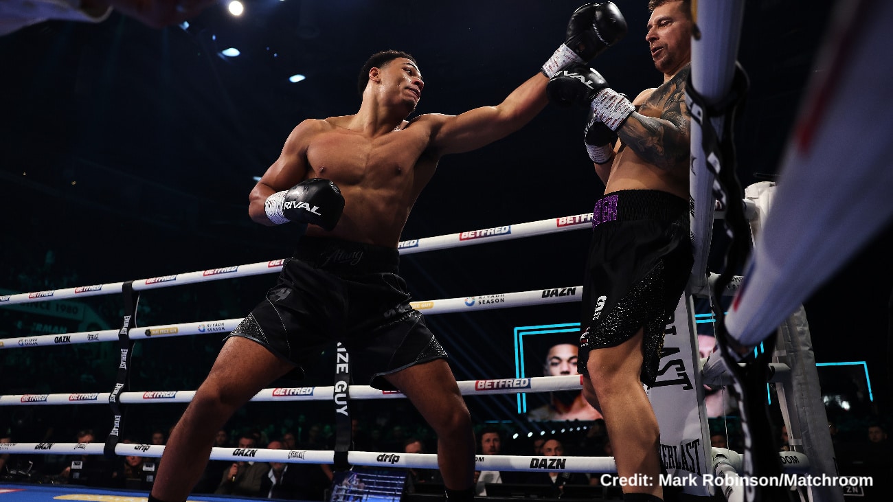 Earlier tonight, on the Leigh Wood-Josh Warrington II card in Nottingham, 19-year-old heavyweight sensation Leo Atang stopped his most experienced pro opponent yet in southpaw Dan Garber. Atang of York came out blazing, and his fast and powerful hands got the job done in a little over 60 seconds. Atang blasted Garber into the ropes, and then the prospect made sure to get the stoppage win.